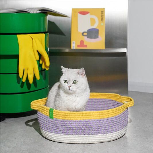 Hand waved cotton rope pet basket