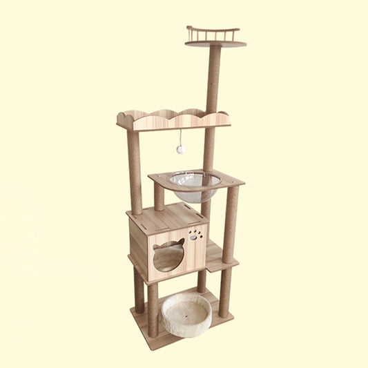 Wood cat tower with capsule nest